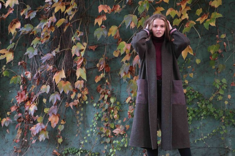 Cappotto verde militare in jersey di lana cotta